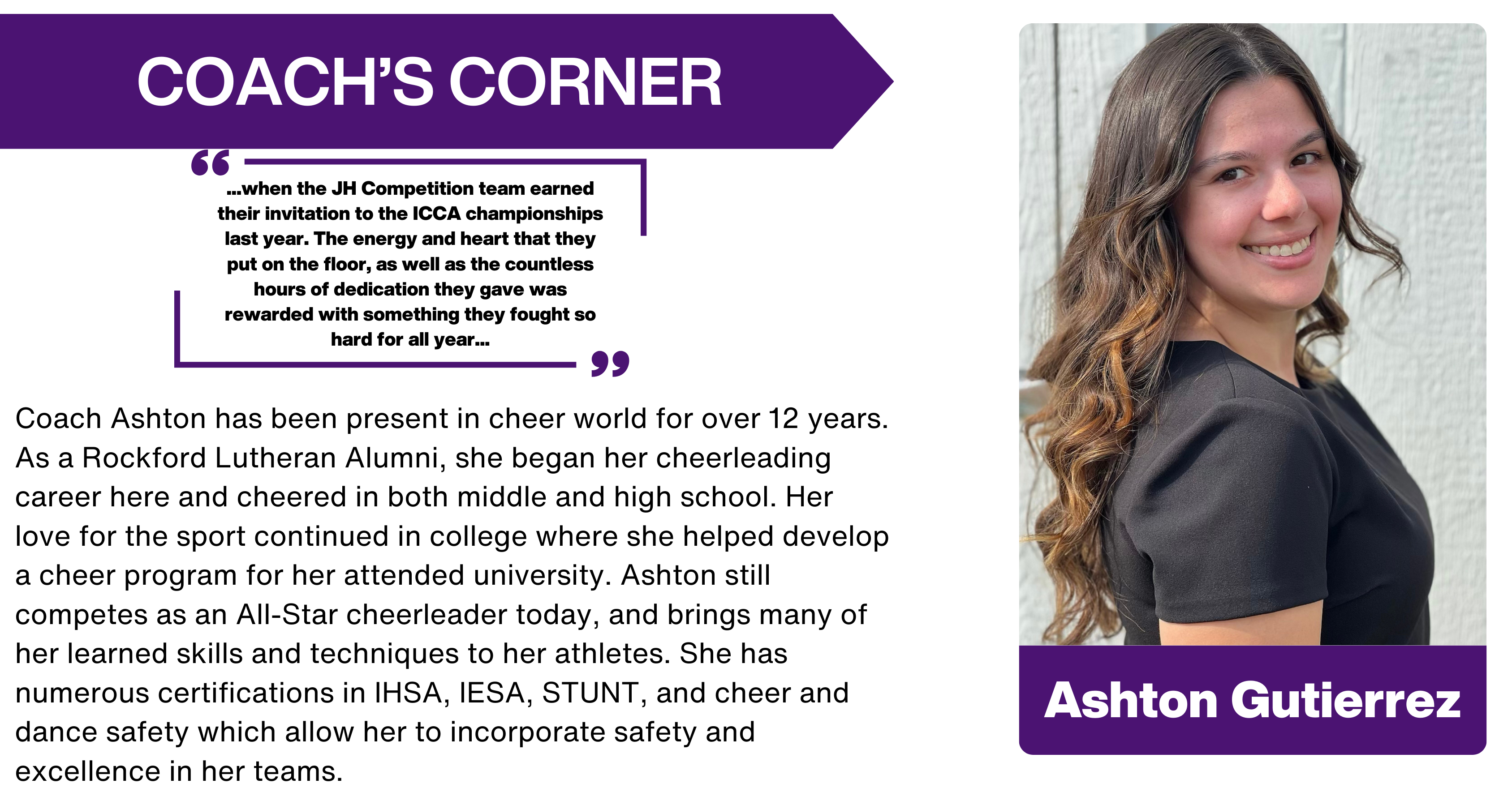 Active year round, our Cheer program is an integral part of Rockford Lutheran culture. Our Junior High Cheer program is led by coaches Jennifer Conner and Ashton Gutierrez.